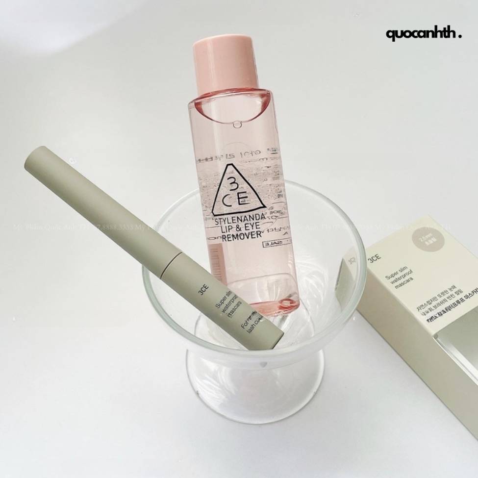 Combo 3CE ( Mascara 3ce Slim Fix Waterproof / Super Slim Waterproof, Tẩy Trang 3ce Lip & Eye Remover )