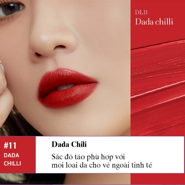- DL11 - Dada Chilli: Sắc đỏ táo phù hợp với mọi loại da với sắc đỏ thuần khiết đến 99,9%